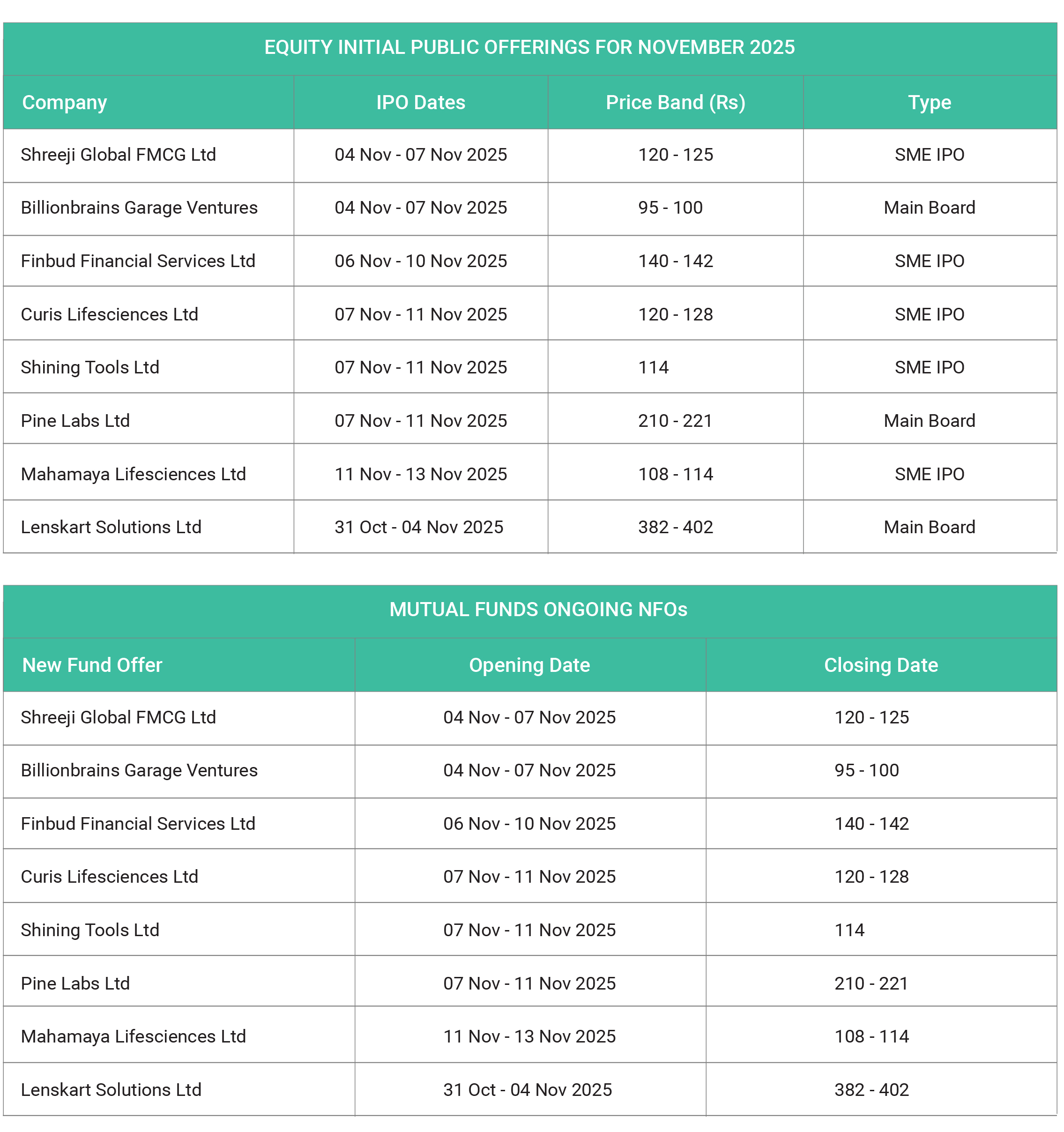 On the domestic front, the Q2 earnings season played a pivotal role in shaping market behaviour. Stellar results from large-cap companies such as Tata Consultancy Services (TCS) and strong operational updates from several blue-chip firms boosted sentiment in the early part of the month. The primary market also witnessed heightened activity, with major IPOs like Tata Capital and Groww attracting overwhelming investor participation. These new listings diverted liquidity temporarily but underscored the deepening retail and institutional engagement in Indian equities. The influx of new capital through IPOs and mutual fund inflows highlighted investors’ growing confidence in India’s structural growth story.